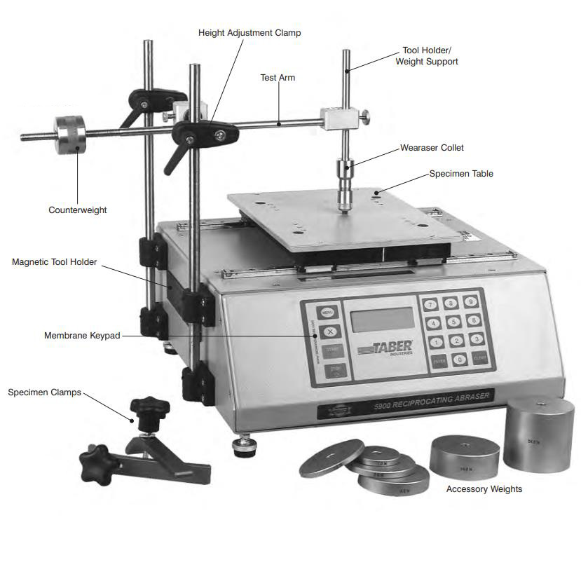 TABER® 往复式磨耗仪 - 5900 与测试标准ISO1518中所描述的仪器类似,适用于测量平面。