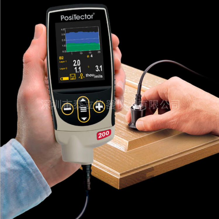 用于非金属基材的涂层测厚仪 使用成熟的超声波技术,非破坏性地测量各种应用。测量木材、混凝土、塑料等的涂层厚度。先进的型号可测量多达3层的图形。 美国DeFelsko超声波涂层测厚仪PosiTector 200 - 随时可以测量--大多数应用不需要校准调整 - 更大的2.8英寸抗冲击彩色触摸屏,重新设计的键盘可快速浏览菜单 - 新的防风、防尘、防水-IP65等级外壳 - PosiTector可互换平台--将任何PosiTector探头连接到一个测量体上 - USB、WiFi和蓝牙连接到PosiSoft PC、Mac和智能手机软件 - 校准证书显示可追溯至NIST或PTB(长表格)。 符合ASTM D6132和ISO 2808标准 特点 - 即刻测量--大多数应用不需要调整 - 新的更大的2.8 "抗冲击彩色触摸屏,重新设计的键盘可快速浏览菜单 - 全新的仪表帮助,只需按一下按钮就能解释菜单项目 - RESET功能可立即恢复出厂设置 耐用性 - 新的防风雨、防尘和防水的IP65等级外壳 - 新的符合人体工程学的设计和耐用的橡胶握把 - 吸收冲击的保护性橡胶皮套,增加抗冲击性 - 量具本体和探头的两年保修期 准确 - 反应灵敏的传感器提供快速、准确的读数 - 校准证书显示可追溯到NIST或PTB,包括 - 经过验证的非破坏性超声波技术符合ASTM D6132和ISO 2808标准 结实耐用 ① 耐溶剂,酸,油,防水,防尘——可全天候使用 ② 耐磨损探头 ③ 防震橡胶保护套皮带夹 测量精确 ① 每台仪器都提供校准证书,可追溯至NIST标准 ② 内置温度补偿确保测量精确 ③ 高分辨率模式提高显示分辨率可满足高精度应用 ④ 符合美国和国际标准包括ISO,ASTM等等 功能强大 ① 连续显示/更新平均值、标准方差、*小/*大厚度及读数数量 ② 屏幕捕捉功能——屏幕图像可以截屏存储,用于保存记录和浏览 ③ 测量值超过上下限设置时通过警示音和指示灯报警 ④ 快速模式——提高测量速度用于快速测量 ⑤ USB接口可以快速方便的连接电脑,持续供电,提供数据线 ⑥ 软件可通过网络进行实时更新 ⑦ 可连接到PosiTector