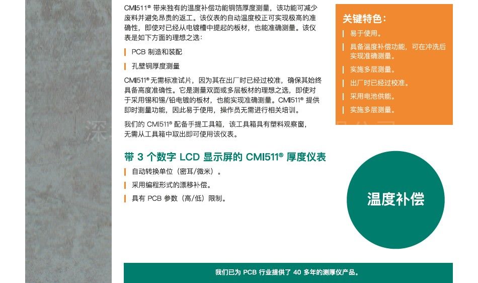 -     日本日立 孔壁铜厚度测量仪 CMI500详细信息| 询价留言品牌:日本日立 加工定制:否 型号:CMI500 类型:镀层 测量范围:0.02-0.102 mm 显示方式:数字 电源电压:3 V 外形尺寸:79×30×149 mm 显示方式:数字