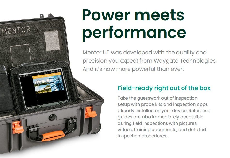 Mentor UT 是首款可以轻松实现无线连接和实时流媒体的超声波检测设备,因此检测人员可以在需要时获得实时的参考信息。 同样的无线云连接使 Mentor UT 能够通过点击按钮,在用户的桌面上远程生成全面的检测报告。