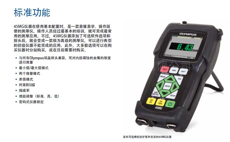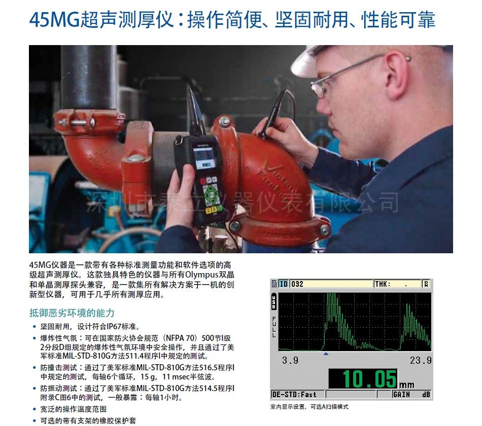 详细信息| 询价留言品牌:OLympus 加工定制:否 型号:45MG 类型:超声波 测量范围:0.08-635 mm 显示方式:数显 电源电压:9 V 外形尺寸:91.1•x•162•x mm 显示方式:数显