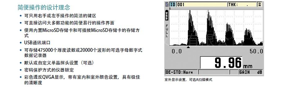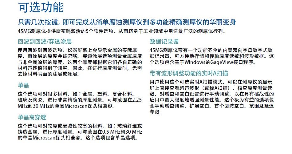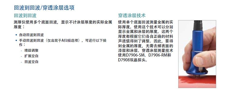 • 回波到回波/穿透涂层选项可测量带有漆层和涂层的表面
