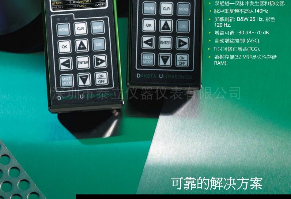 (坑及探伤)自动温度补偿–措施从0.025 19.999英寸(0.63毫米至500毫米)。