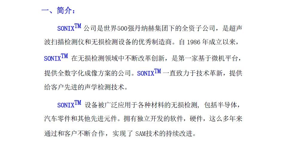 SONIX™公司是丹纳赫集团(NYSE: DHR)下的全资子公司,是全球超声波扫描检测仪和无损检测设备的领先制造商。 自1986年成立以来,SONIX™在无损检测领域中不断改革创新,是一家基于微机平台,提供全数字化成像方案的公司。 SONIX™ 一直致力于技术革新,提供给客户*领先的声学检测技术。
