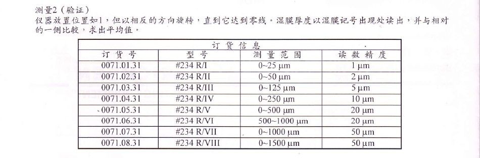 测量干膜时,利用漆膜与基材的水平相差,测量漆膜厚度。测量湿膜时,触电通过旋转按钮开高,然后降至湿膜表面。