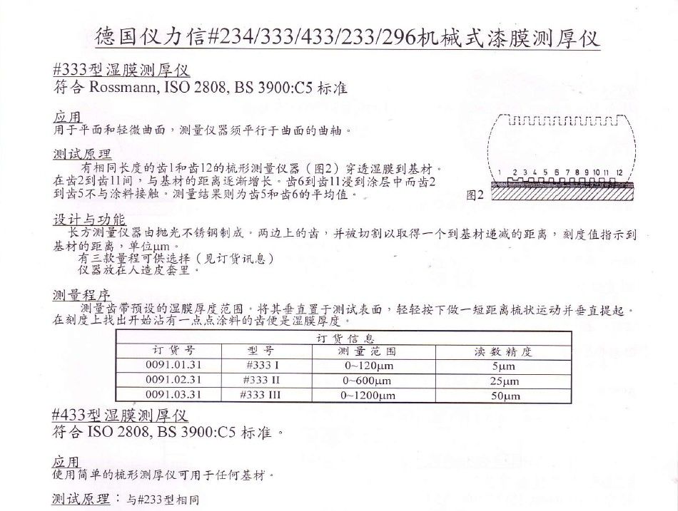 -     德国仪力信 干湿膜测厚仪296 333详细信息| 询价留言品牌:德国仪力信 加工定制:否 型号:333 类型:涂层 测量范围:0-100 mm 显示方式:划格 电源电压:无 V 外形尺寸:50 mm 显示方式:划格