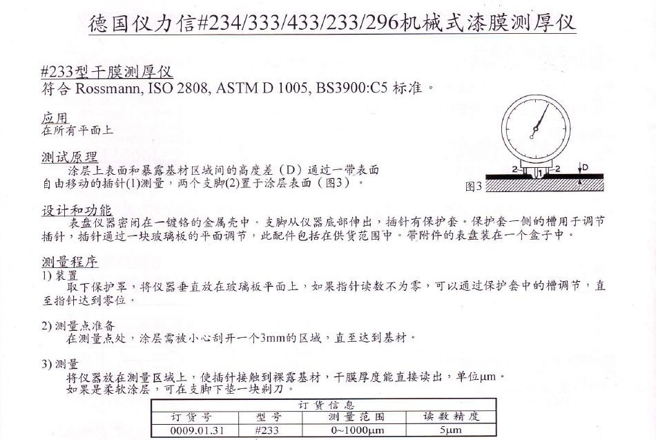 干膜涂层的D值与233相同,其D值是由一支可上下伸缩的测试针