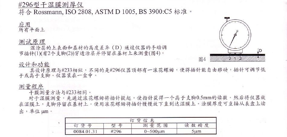 湿膜涂层的D值则是通过仪器的手动调节测试针(1)穿透涂层并停留在底材上来测量,也带有两个支(2)。