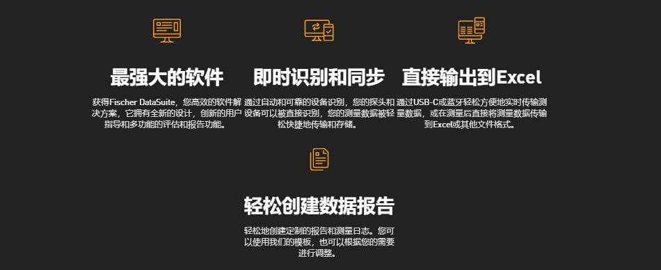 选用这些测量套装,您可以轻松、快速、无损且精确地测量涂层厚度,这是所有Fischer仪器的典型情况。
