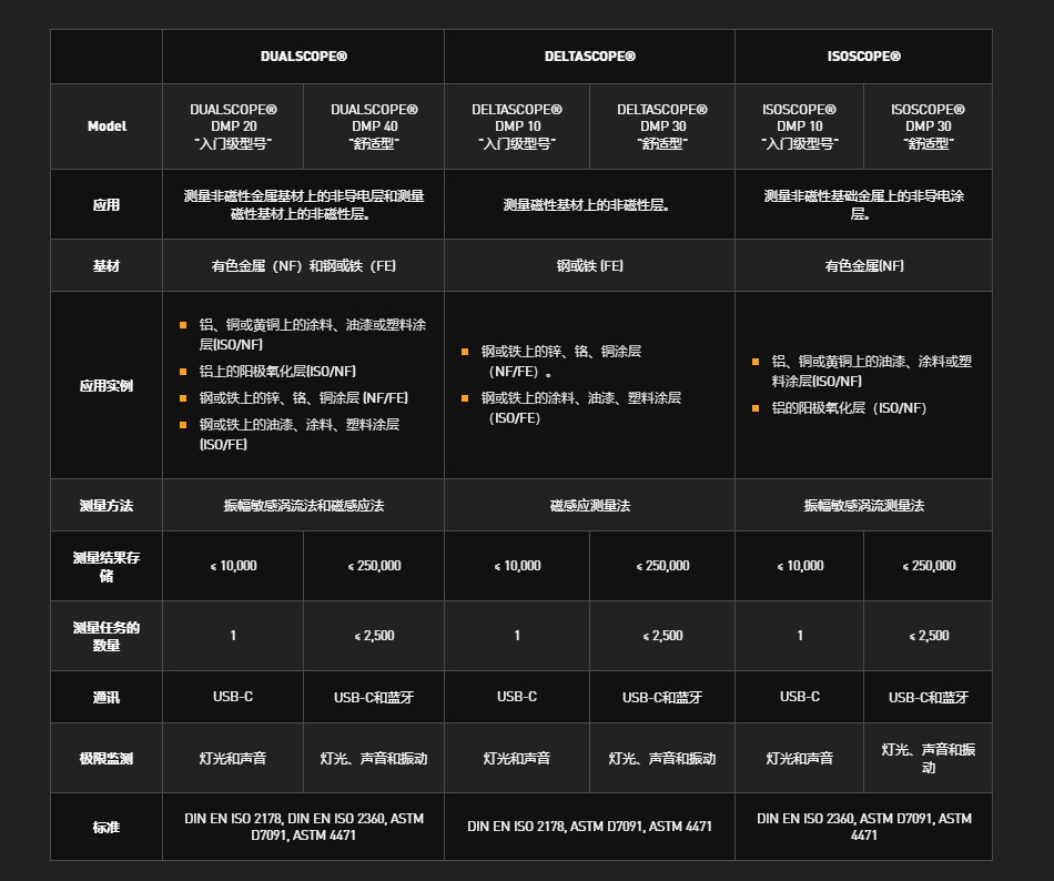 该仪表系列包含用于测量铁基、导电基体材料或两种基体材料的仪表材料模型。