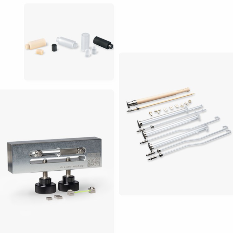 对于不同尺寸的样品有多种不同规格的石英、氧化铝样品支架和推杆可供选择。除了针对膨胀,针入,和拉伸模式之外,还提供三点弯曲模式的推杆和支架。