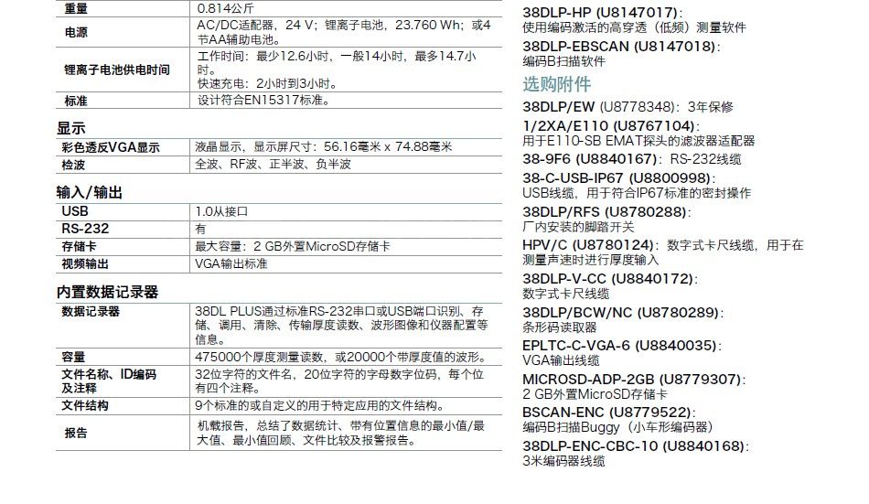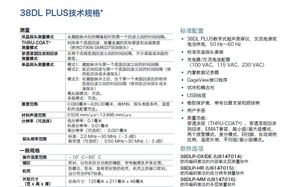 在选择探头时,请查看下面的列表,或查阅随您所购买测厚仪附送的指导手册中的探头频率范围。