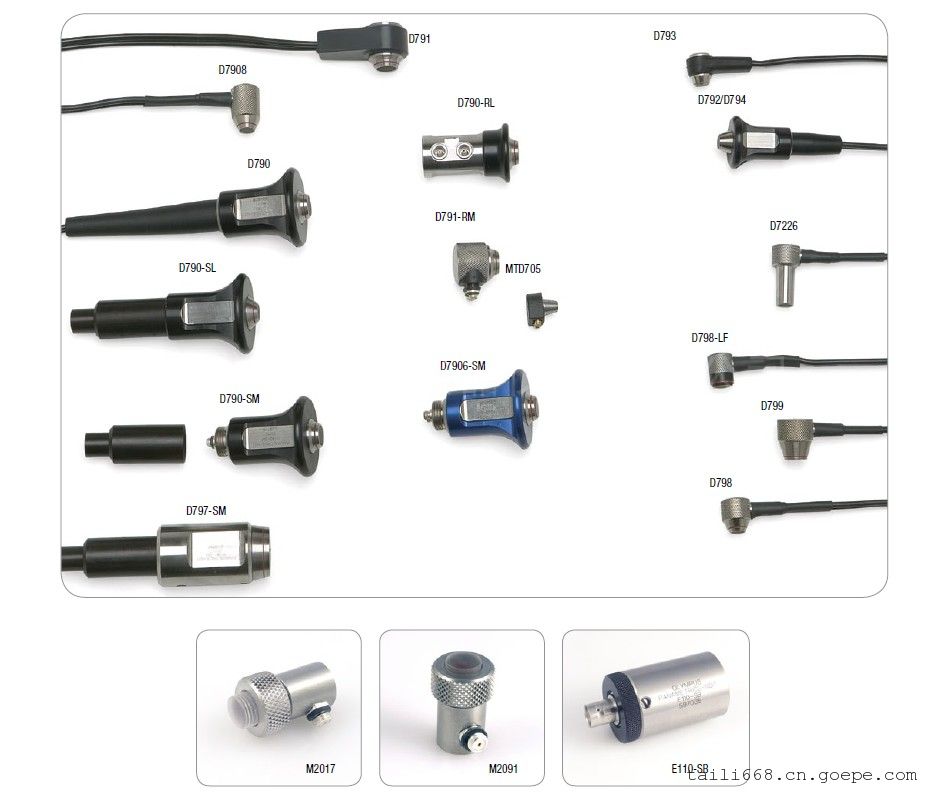 Microscan探头的工件编号反映了其连接器的类型:RM = 直角型MicrodotSM = 平直型MicrodotRB = 直角型BNCSB = 平直型BNCSU = 平直型UHF
