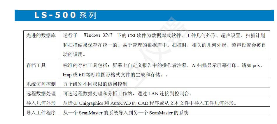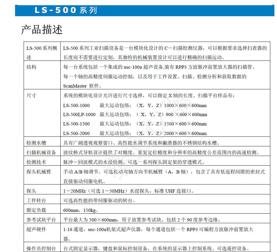 概述LS-500 系列工业扫描设备是一台模块化设计的 C-扫描检测仪器,可以根据要求选择扫查器的长度而不需要进行定制,其*的机械装置设计可以进行扫描运动。