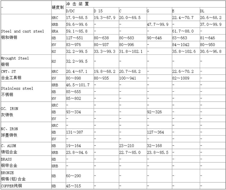 里氏、肖氏、布氏、洛氏B、洛氏C、维氏