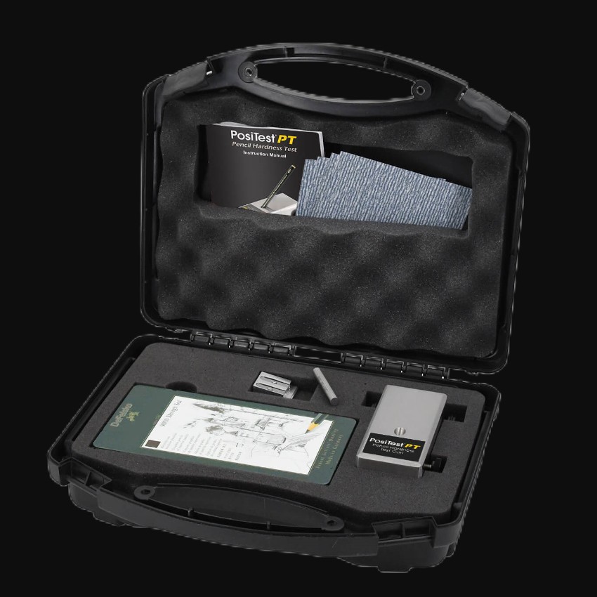 专门为铅笔硬度测试设计的定制铝制卷笔刀,包括5毫米和6米的精确石墨长度参考标记