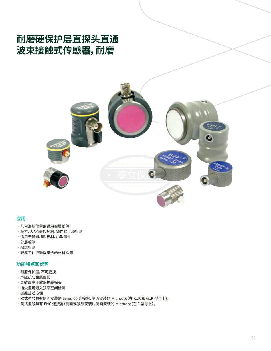 硬保护层直探头 - 直通波束接触式传感器,耐磨