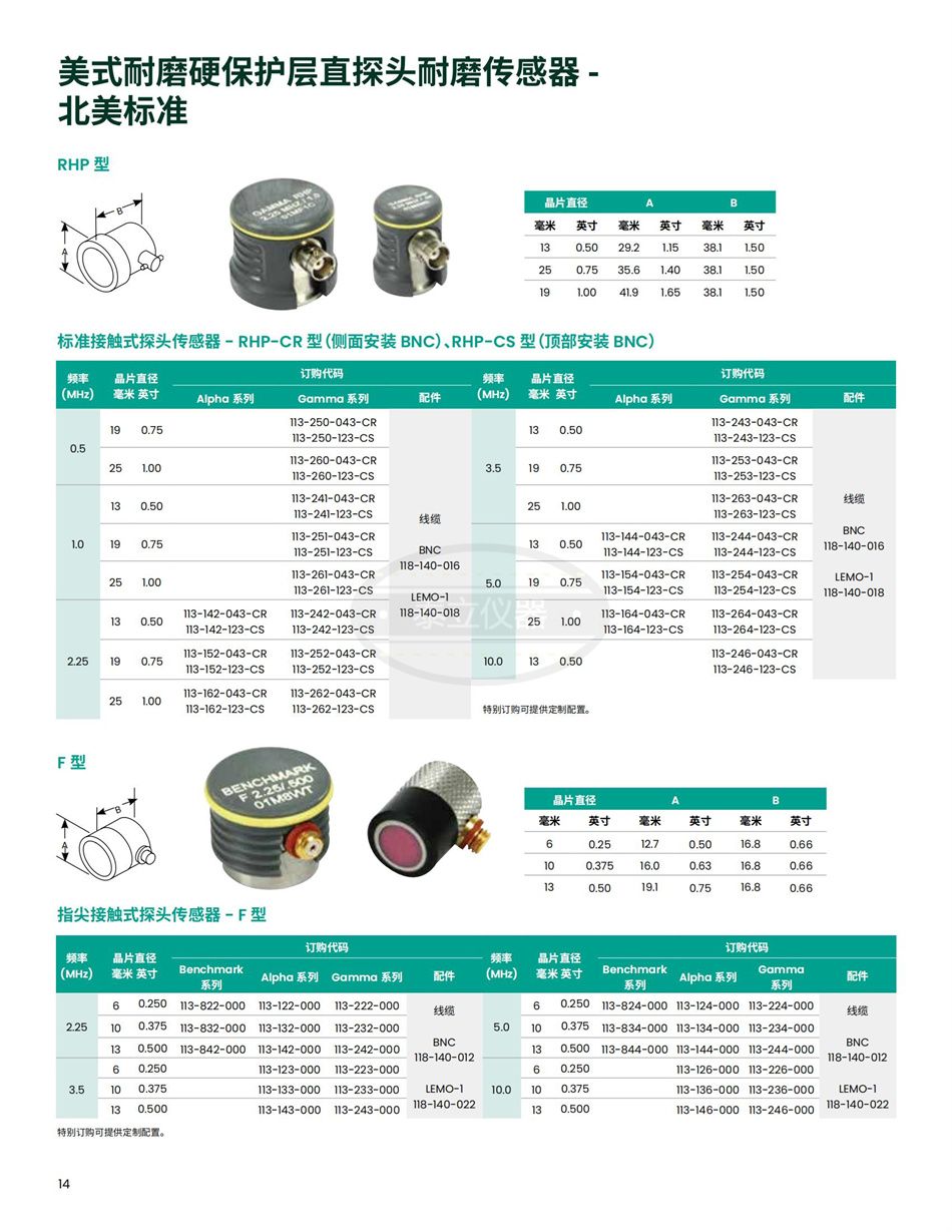 ·美式型号具有BNC连接器(侧面或顶部安装)、侧面安装的Microdot(在F型号上)。