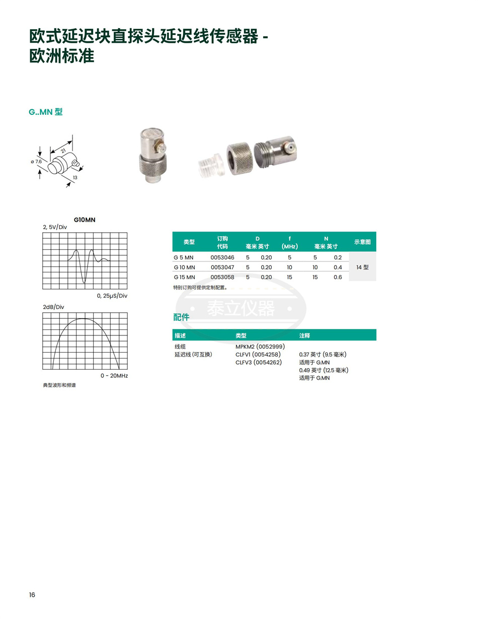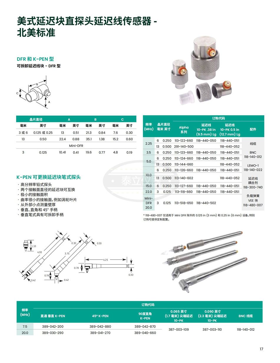 带延迟块接触式直探头直通波束接触式传感器,延迟线