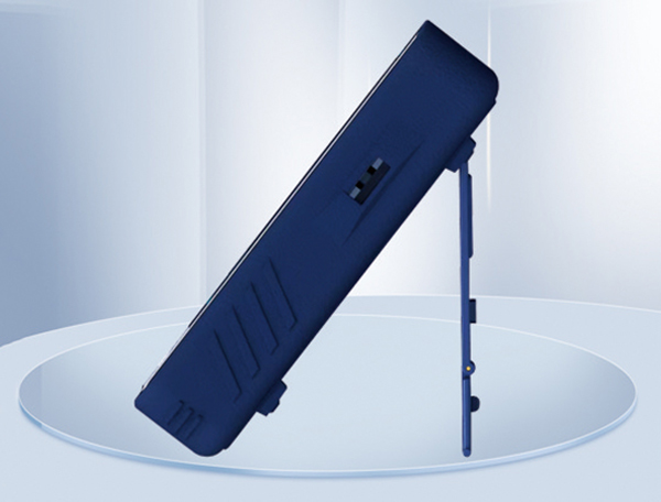 主机设有支架、背带,可支撑在桌面或垂挂胸前,便于读数。技术领先、体积精巧、仅重600g,便于携带。