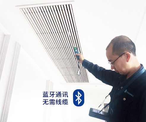 探头与本体采用蓝牙通讯,无需线缆,更易于测试较远的管道或出风口的参数。