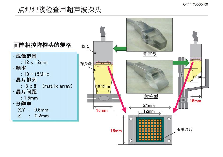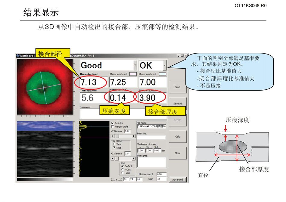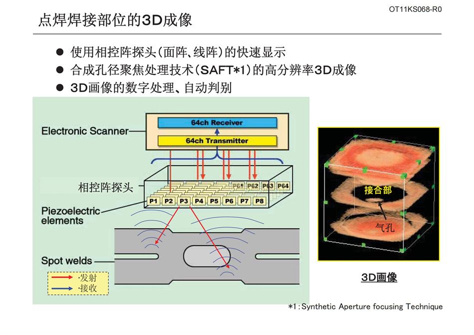 一可对点焊焊接接合部位实现3维成像。—即使存在气孔也能正确判断接合部位。一用一种探头可以检查各种各样的点焊焊接