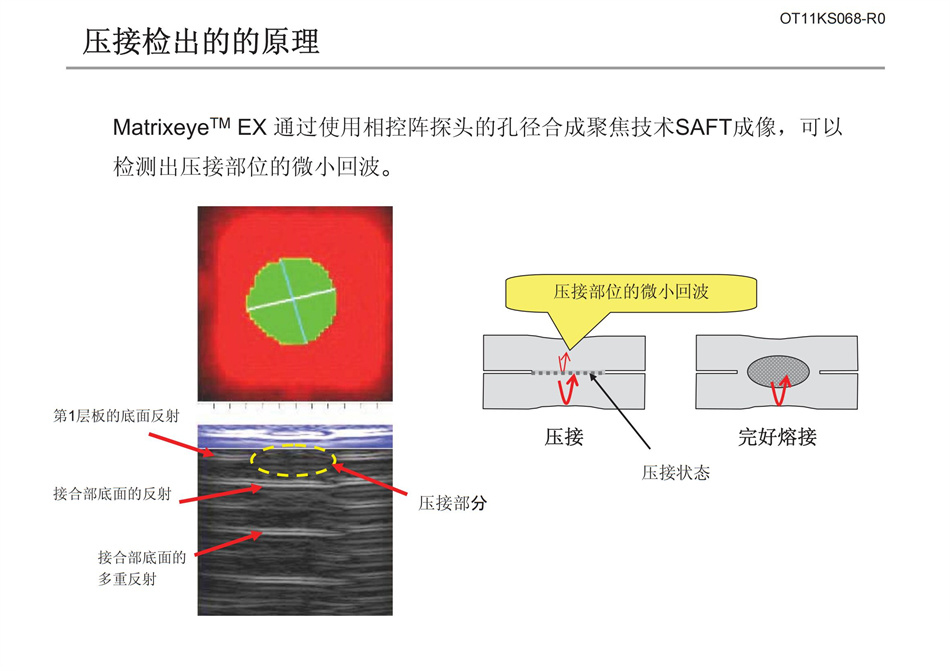 Matrixeye EX通过使用相控阵探头的孔径合成聚焦技术SAFT成像,可以检测出压接部位的微小回波。