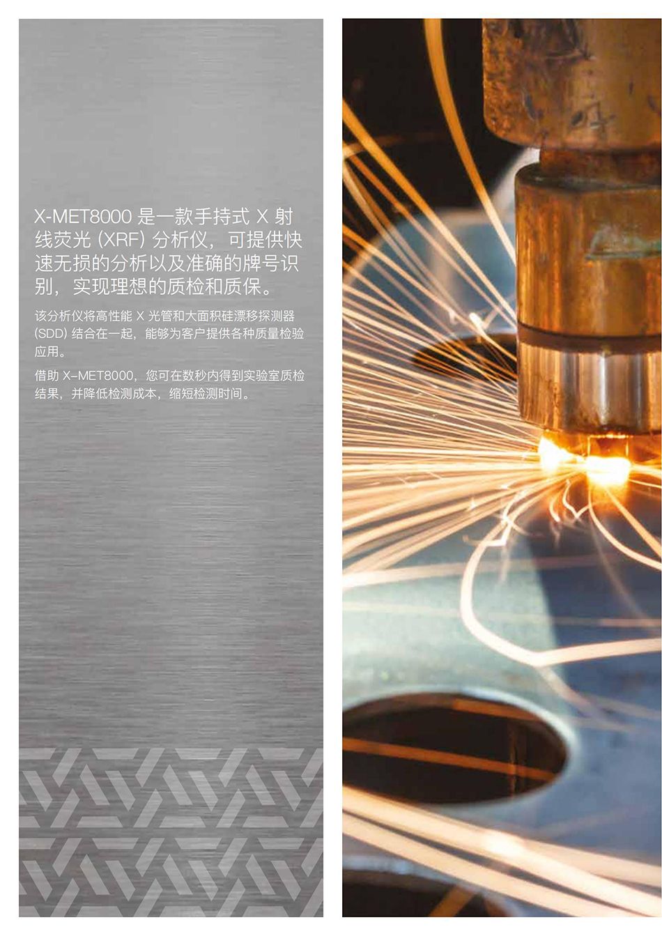 X-MET8000 是一款手持式 X 射线荧光 (XRF) 分析仪,可提供快速无损的分析以及准确的牌号识别,实现理想的质检和质保。