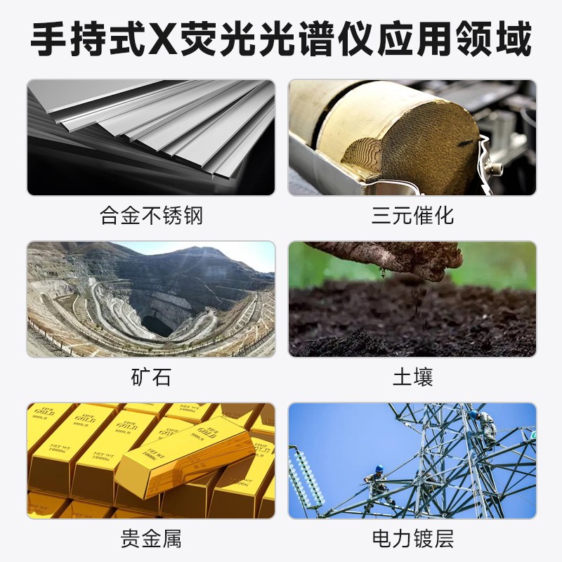 提供土壤样品基本参数法(FP法):可测试土壤及矿物样品中的 Ag, As, Au, Ba, Ca, Cd, Cr, Co, Cu, Fe, Hg, K, Mn, Mo, Ni, Pb, Pt, Rb, Se, Sr, Sn, Sb, Ta, Th, Ti, Tl, V, W, Zn, Zr Br.等28种元素;提供由中国国标GSS土壤标样校准的符合中国土壤样品测试的检量线法,符合EPA 6200方法要求