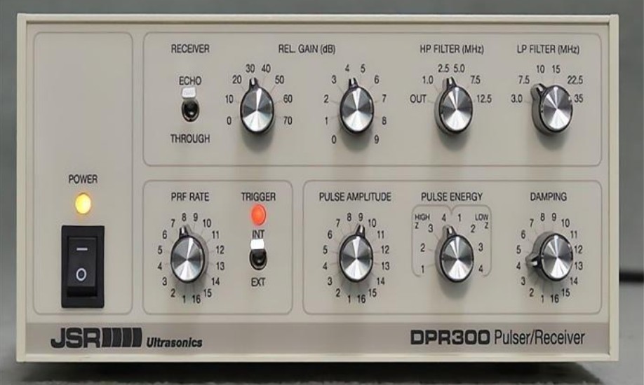 DPR300是可实现计算机控制的,具有极低噪声的超声波脉冲发生接收器。仪器控制部分包括接收增益,高低通滤波截止频率选择,脉冲能量,脉冲振幅,阻尼等级,回波或透射模式选择,脉冲重复率和脉冲触发源选择。仪器还可手动调节。