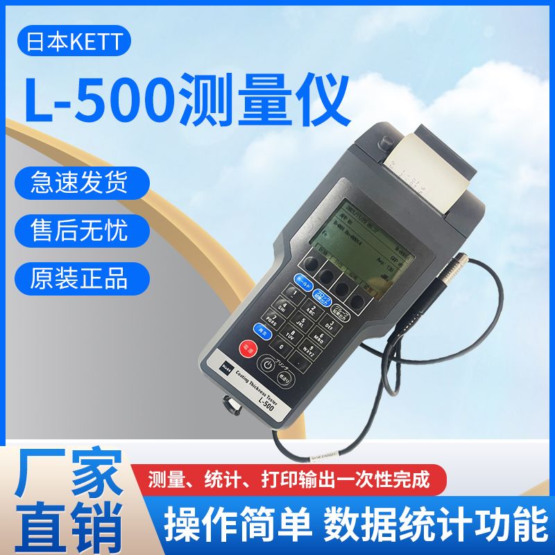 -     日本KETT凯特薄膜测厚仪L-500详细信息| 询价留言品牌:日本KETT凯特 加工定制:否 型号:L-500 类型:薄膜 测量范围:0-2.5 mm 显示方式:数字 电源电压:6 V 外形尺寸:126×256×93 mm 显示方式:数字 日本凯特KETT薄膜测厚仪L-500