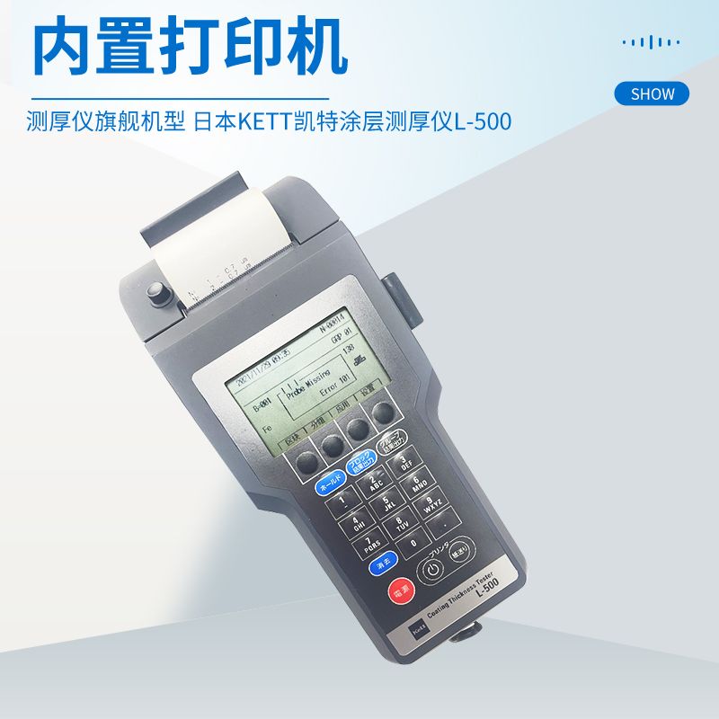 产品简介涂层厚度测试仪L-500是一种涂层厚度计,根据要连接的探针,可以测量电磁类型和涡流类型。L-500涂层厚度测试仪是一款带有集成打印机的涂层厚度测试机。