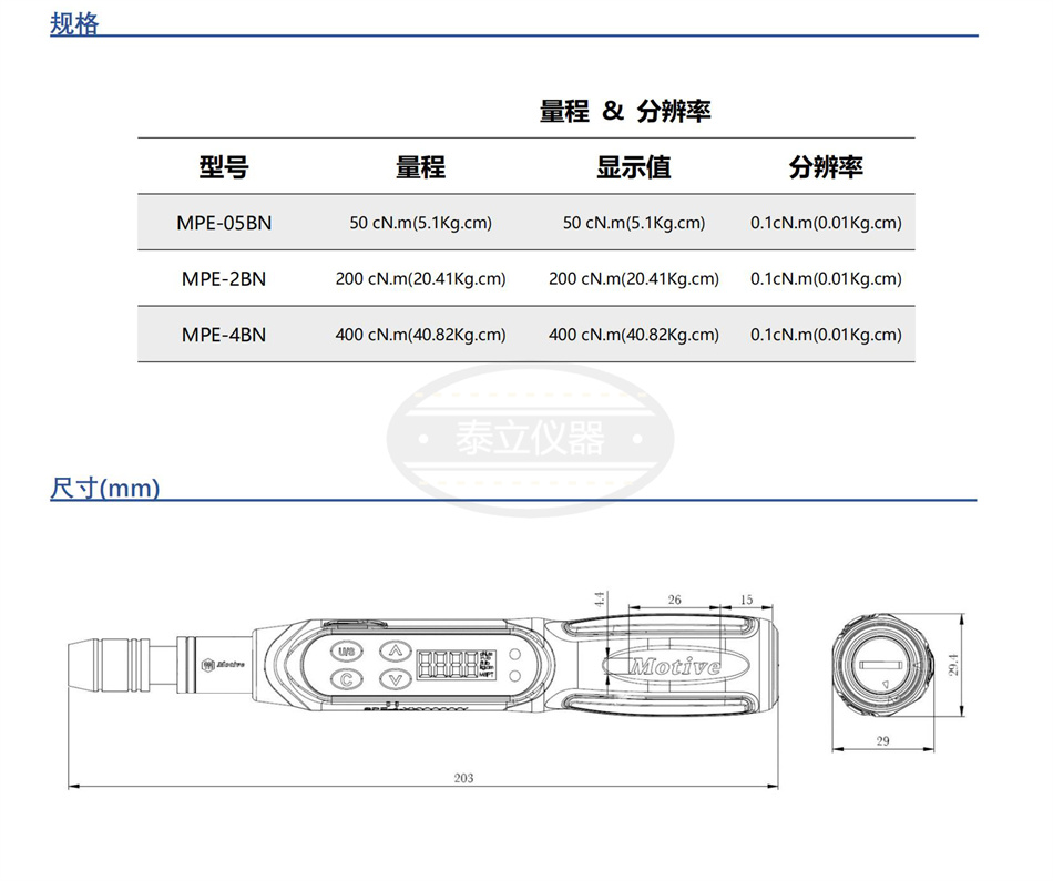 一诺MOTIVE高精度数字式扭力起子MPE系列