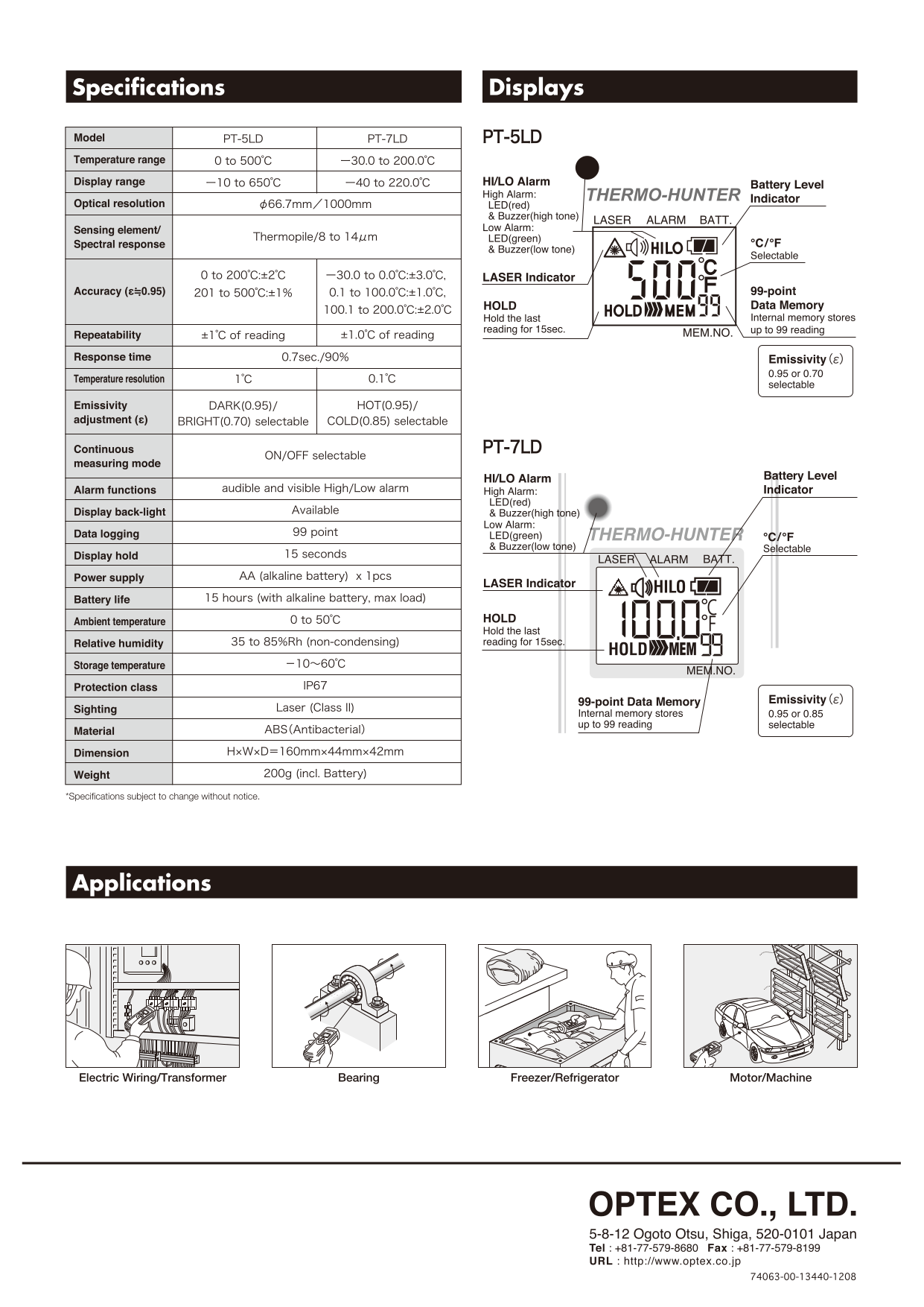 日本奥普士红外测温仪PT-7LD/PT-5LD