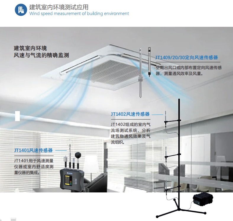 1、建通科技JT14XX系列风速探头均可以适配(标配探头为JT1402)