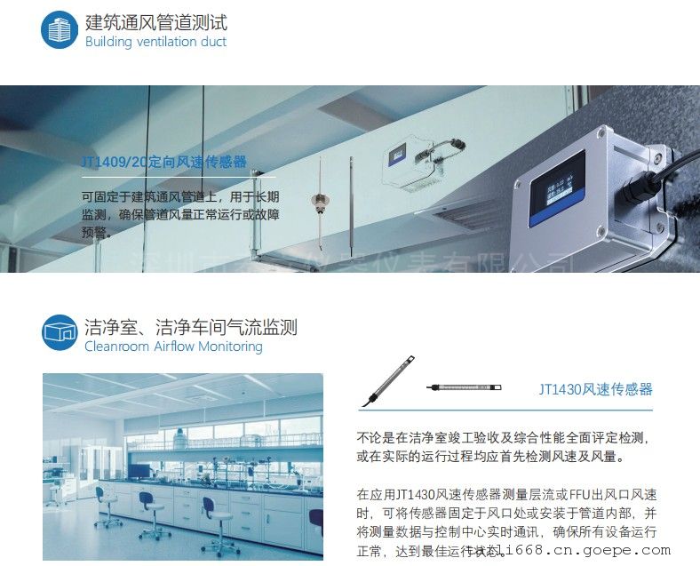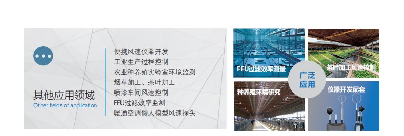空调管道风速、风温测量、检修;新风系统进/回风口风速、温度测量检修;工厂、车间通风效率测量洁净室气流控制、公共场所气流扰动测量。 -