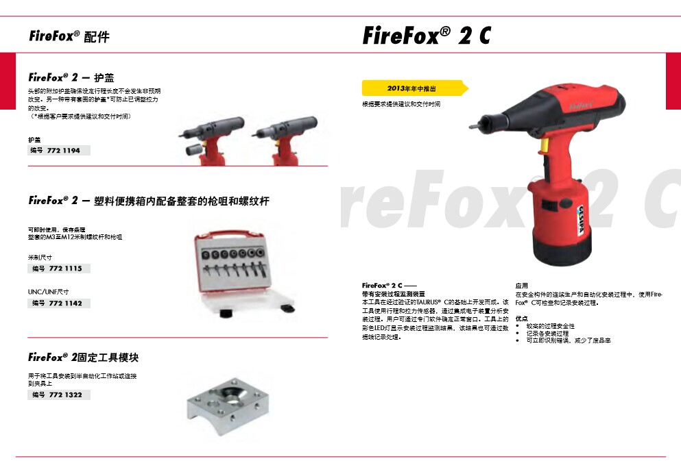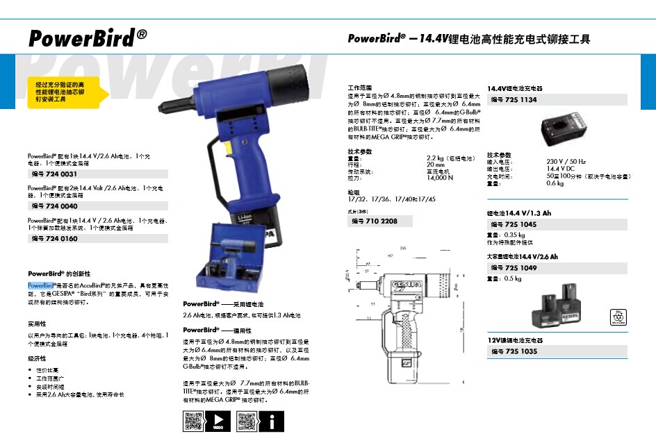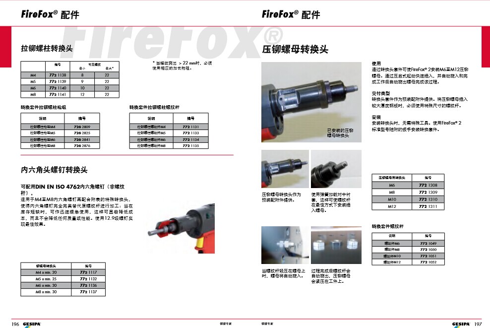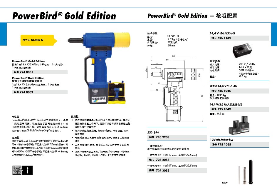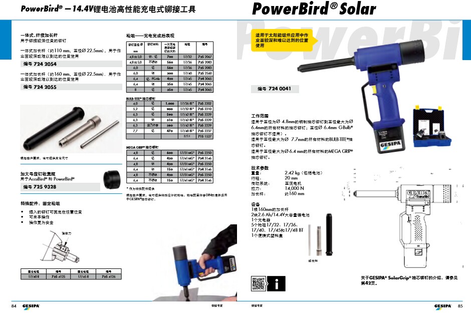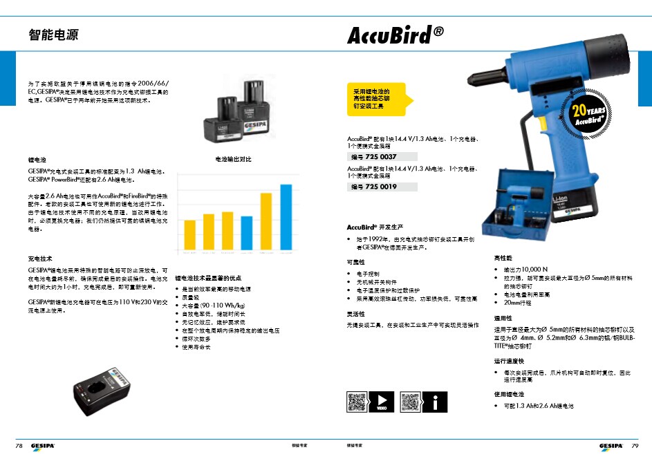 德国GESIPA气动铆钉枪GESIPA®技术产品如GAV全自动铆接机、不断开发的 充电式拉铆钉安装工具Pro Gold Edition系列、TAURUS®系 列、FireFox® 1和2铆螺母安装工具,在市场上占据了 地位。