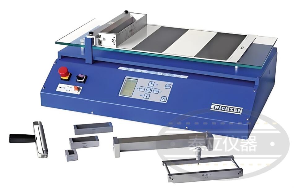 ERICHSEN(仪力信)510型涂膜大师,原理上来说其只是通过驱动步进电机,使得推进支架进行往复运动,利用步进电机的精确运作,在制膜时可以对涂布的行程和速度进行精准的控制,即可制出一块标准的湿膜。