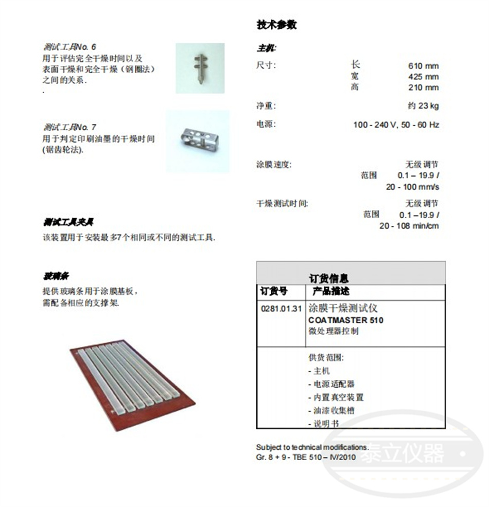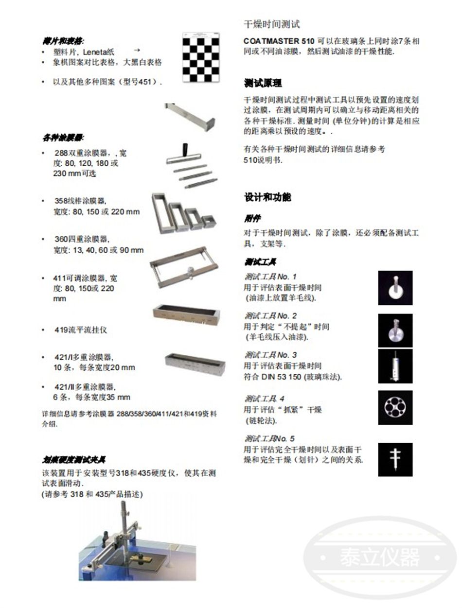 备注:上述7种测试工具须配备必要的支架才可作干燥时间测试。