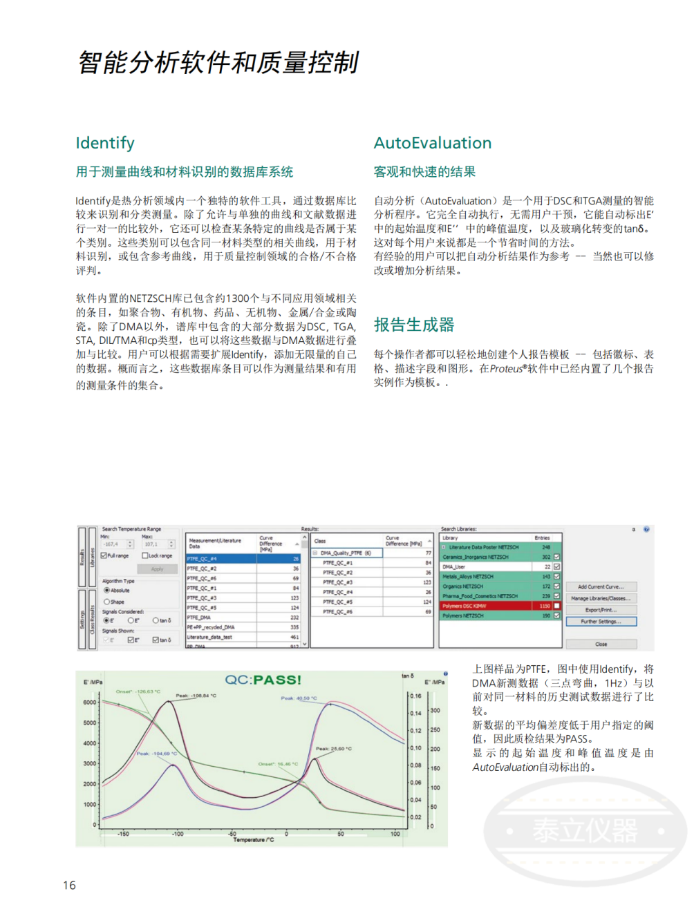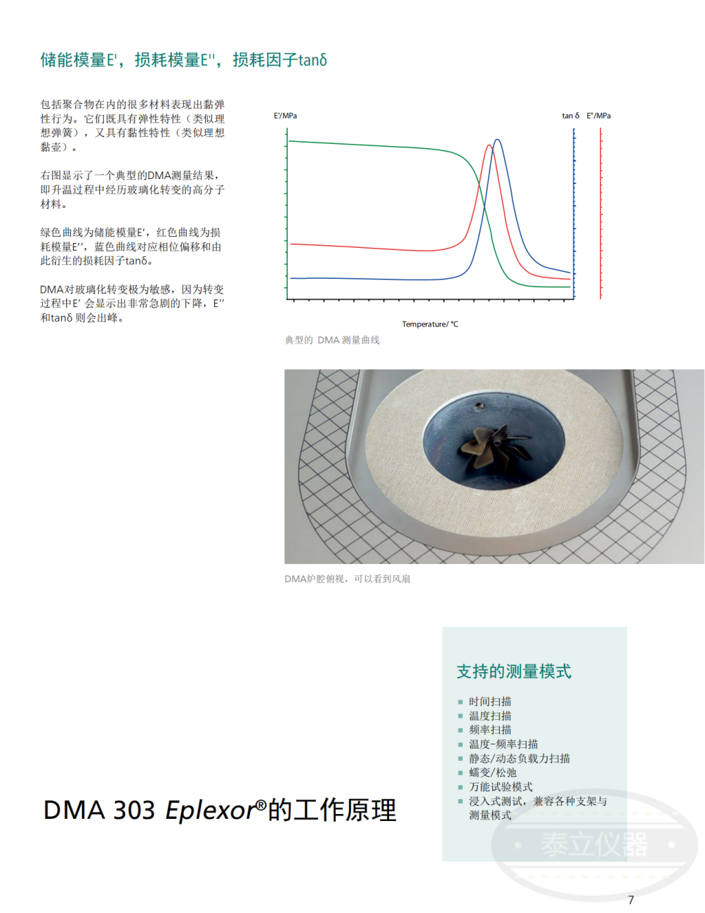 可测量储能模量,损耗模量,损耗因子,长度变化… 以对数或普通坐标显示。
