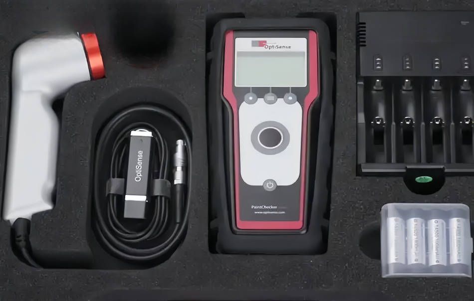 德国OptiSense 公司的 PaintChecker 移动式膜厚测试仪可在不接触工 件表面的情况下,可精确测量在金属和非金属基底上的潮湿、粉 状和固体涂层。 小巧轻便的手持设备非常适合在实验室和生产中连续使用。功能强大、小巧轻便