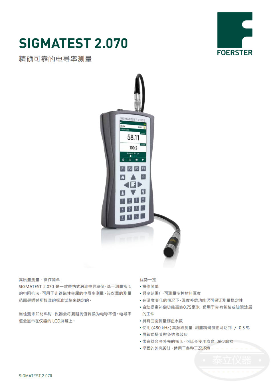 德国Foerster航材导电性测量仪SIGMATEST 2.070