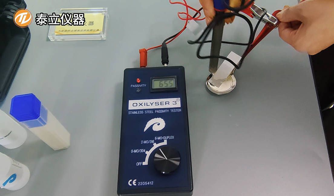 Oxilyser3检测仪:无损检测钝化膜质量,需配合电解液试纸使用,通过绿/红灯指示合格与否。(小巧便携,移动式现场检测)