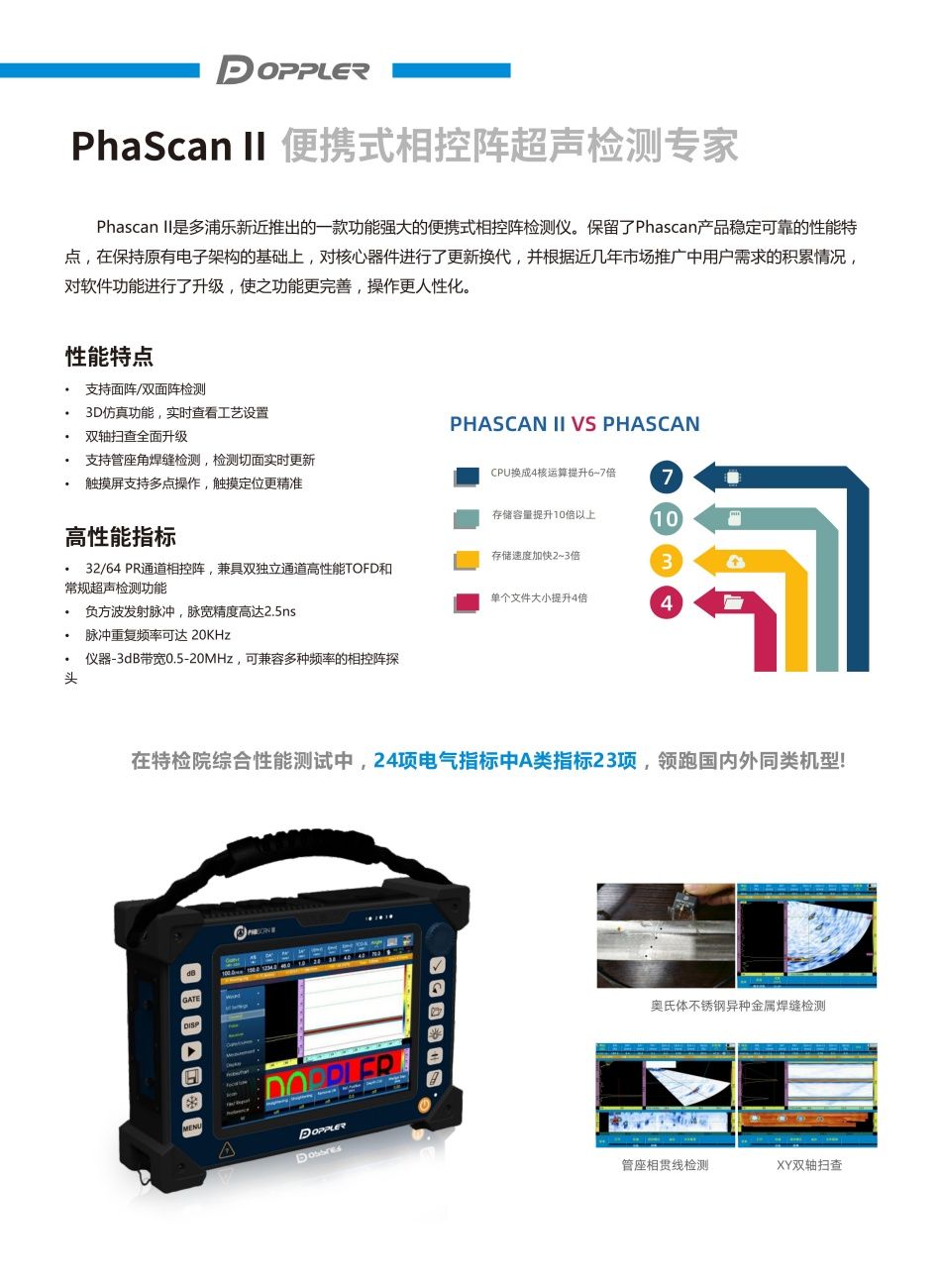 PhaScan II 是多浦乐生产的便携式相控阵超声检测仪,主要用于工业无损检测,支持TOFD(衍射时差法)和常规超声检测功能。