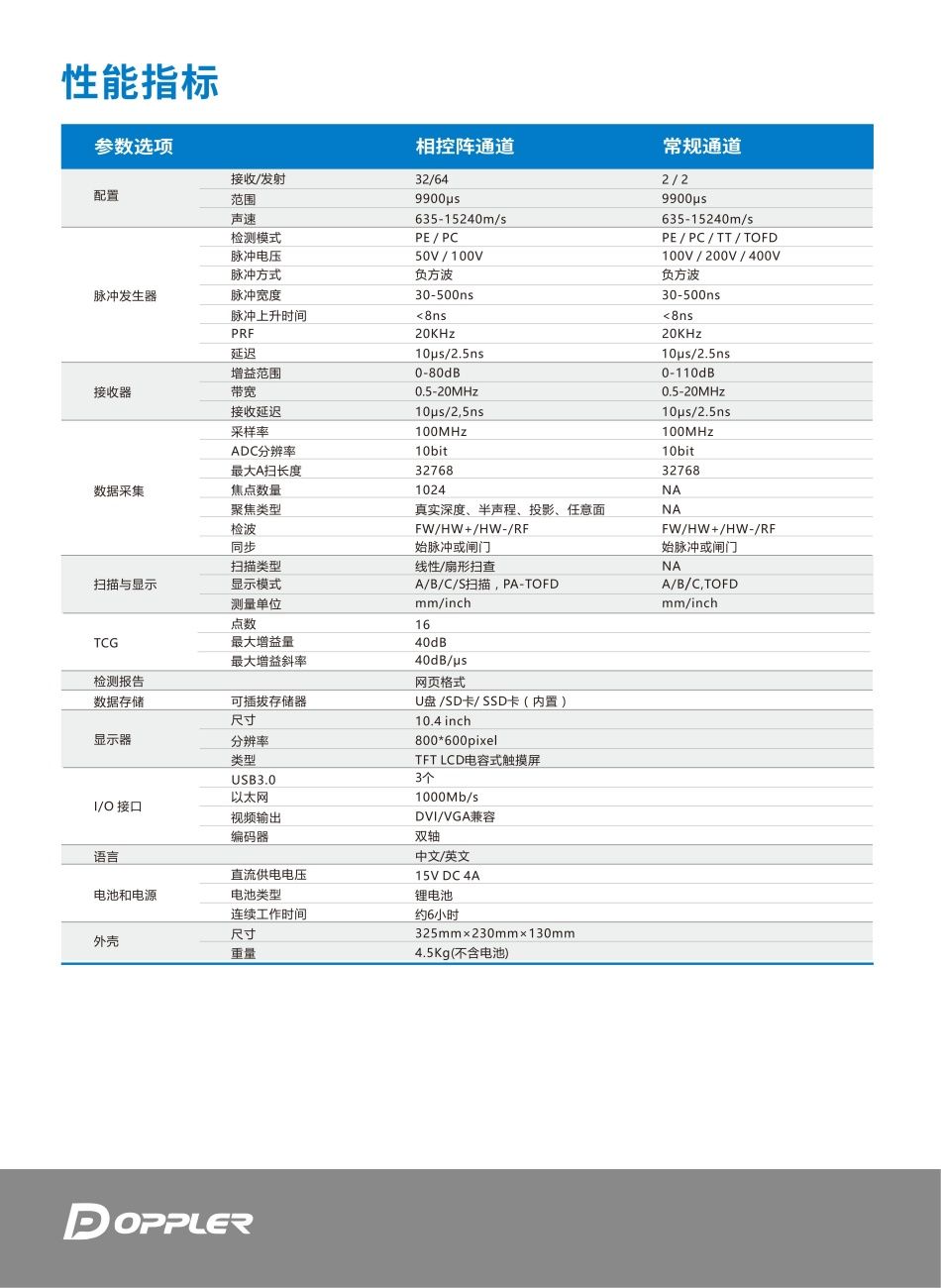 通道配置:32/128个相控阵通道,兼具双独立通道TOFD和常规超声检测功能