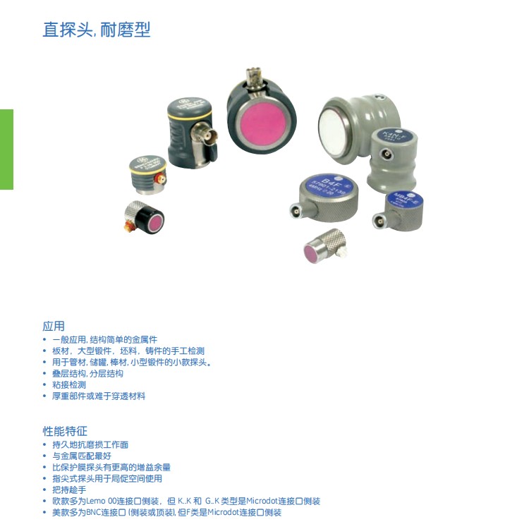 通过与德国联邦材料检测研究所(BAM)合作,*新研制的斜探头和双晶探头可连续工作至250℃。当接触面温度升高到250℃以上时,测量后的探头必需降底温度。斜探头允许的*大接触温度大约是350℃,但是在如此高的温度下延迟块性能会受到一定的影响。此外,双晶直探头可以承受的*高接触温度大约为800℃。根据温度的不同,选用的偶合剂也不同:Z G T 可以达到2 5 0℃,而Z G M可以达到550℃。在超过550℃的温度下,可以用玻璃粉偶合。这些特殊设计的探头同样可以在-197℃的低温下进行测量。